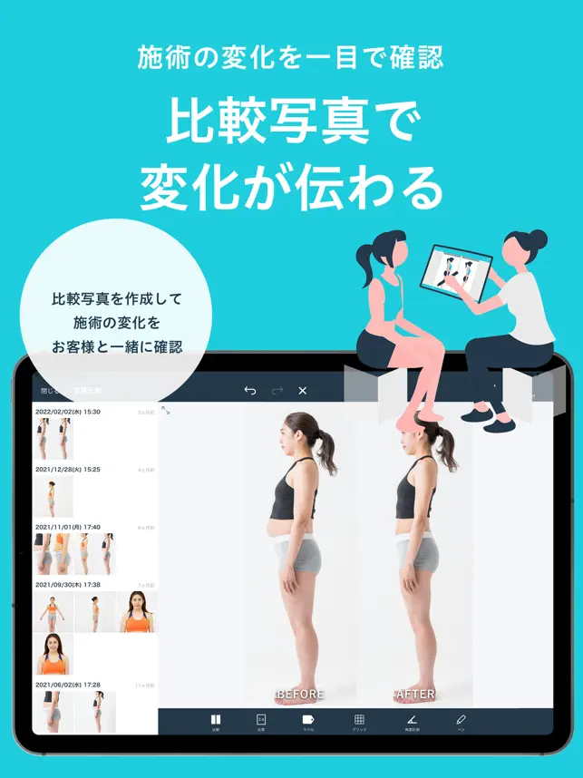 変化を写真で伝えることができるので、お客様の満足度やモチベーションが上がりリピート率UP!