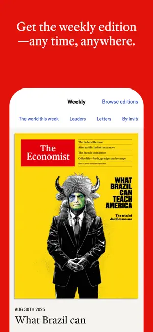 Enjoy early access to The Economist’s weekly edition, ahead of print delivery Catch up quickly with The World in Brief for short news updates Explore short videos that distill big news topics