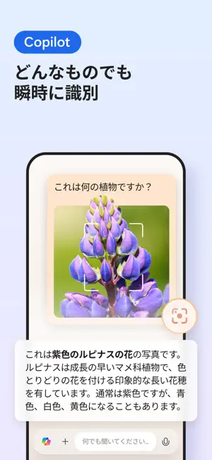 • Copilot でビジュアル検索 — 画像をアップロードして検索、インサイトの取得、AI レンズでインスピレーションを得る。 • AI 搭載の Copilot を使ってウェブページ、PDF、動画を瞬時に要約 — 数秒で明確かつ出典付きのインサイトを提供。 • OpenAI と Microsoft の最先端 AI モデルにより、これまでにないスマートな情報探索を実現。