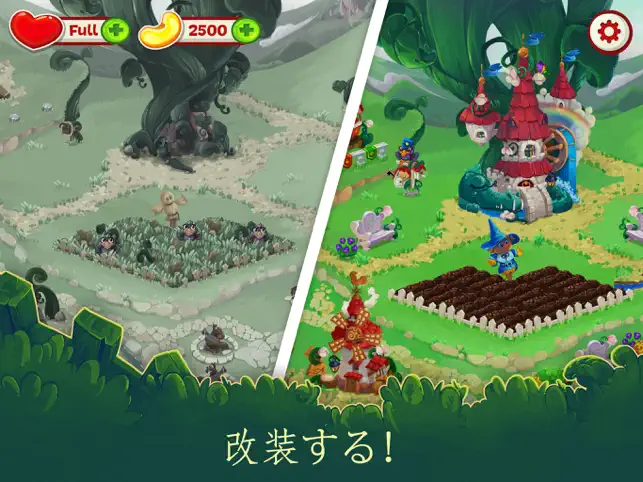 あなたの大好きなおとぎ話に基づいたマッチ3ゲームで最高の農場主になりましょう!おとぎ話の世界で面白い冒険に旅立ちませんか。ジャッキーの農場を襲ってきた巨人を倒しませんか。豆の木を登って彼を追いかけ、盗まれたものを取り戻しましょう。農場で収穫物を育てたら、毎日ボーナスをゲットできます。一人でプレイできるし、友達と一緒に挑戦して、勝利を楽しめます。美しい風景、カラフルなグラフィック、素敵なエフェクト、そして魅力的なゲームジャンルにはまってしまいます。農業とおとぎ話の世界はあなたを待っています!