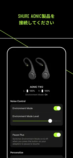 Shure PLAYでは‏、‎Shure AONICヘッドホンやイヤホンをパーソナライズおよびアップデートできるだけなく、ハイレゾファイルの再生が可能で‏す‎。ア‏プリ‎の高度なパラメトリックEQを使用して聴くか、EQ設定をサポート対象のShureデバイスに直接保存することにより、どこで音楽やポッドキャストを聴いてもカスタマイズされた体験を楽しむことができま‏す‎。