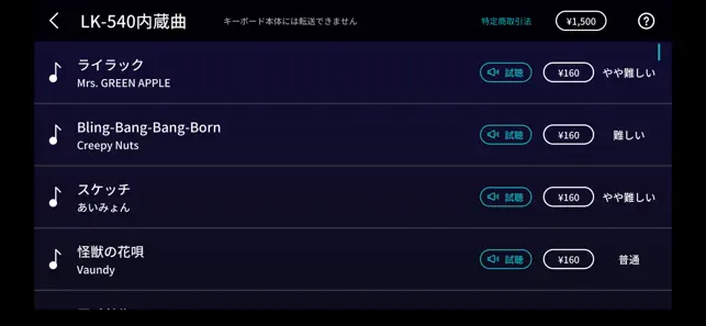 LK-530本体に内蔵されている曲のNo.1~31は著作権曲となり、ソングバンクプラスでご利用いただくためにはア‏プリ‎内での購入が必要となりま‏す‎。