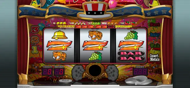 (3)停止ボタンで3つのリールを順番に停止させます。
