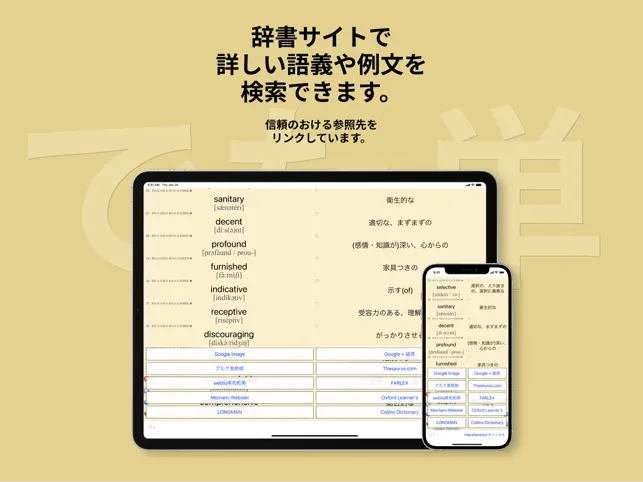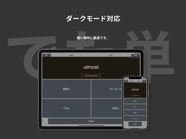 - 単語帳これだけでいい 有名どころの単語帳なんかは沢山ありますがこれ一つで十分の情報量を補ってくれることを考えると課金してもお釣りが来ます。常にブラッシュアップを続け改良してくれるので嬉しいです。例文へのアクセスがワンタップになった等UIやデザインはよくなるばかりで本当にお気に入りです。 以下要望です。 最後に出てくる学習履歴をX以外でもシェアできるようにしてほしい。 いつも使っているチャットアプリ(Discord)にアップしてモチベーション維持したいけれど、文字列のコピーすらできないのでスクショを撮るか一度Xを経由してコピーするしかない現状です。せめて文字列のコピーができるようにして欲しいです。 オリジナル単語帳にある単語リストを文字列で一括コピー、または他のアプリに転送できるようにして欲しいです。 これもノートがわりにしているDiscordのチャンネルにペーストしていつでも見られるようにしたいためです。会話中インプットしたばかりの単語を使いたくて、「あれなんだっけ?」となった時の一覧として。