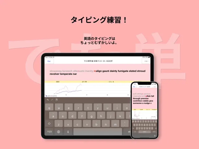 <タイピング> 英単語のタイピングの練習ができます。資格試験のパソコン受験でのライティングを意識してキーボード入力の練習用に実装しました。