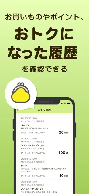 獲得したアプリボーナスポイントとアプリでトクをした履歴を確認できます。おトクに便利にお買いものを楽しんでください。
