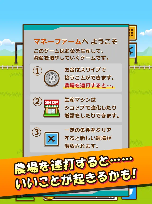 あなた専用のコイン生産農場を育てて、世界一の超大金持ちを目指そう!