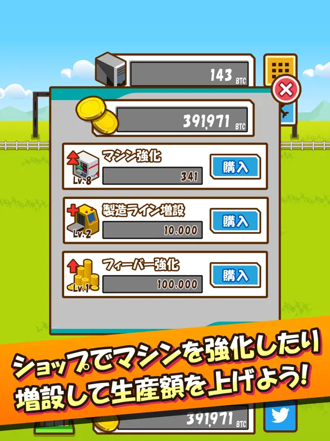 貯めたコインでマシンを強化したり増やしたりして、