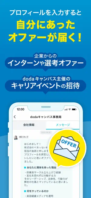 プロフィールを登録すると、あなたに合った早期選考やインターンシップの特別なオファーが届きます!