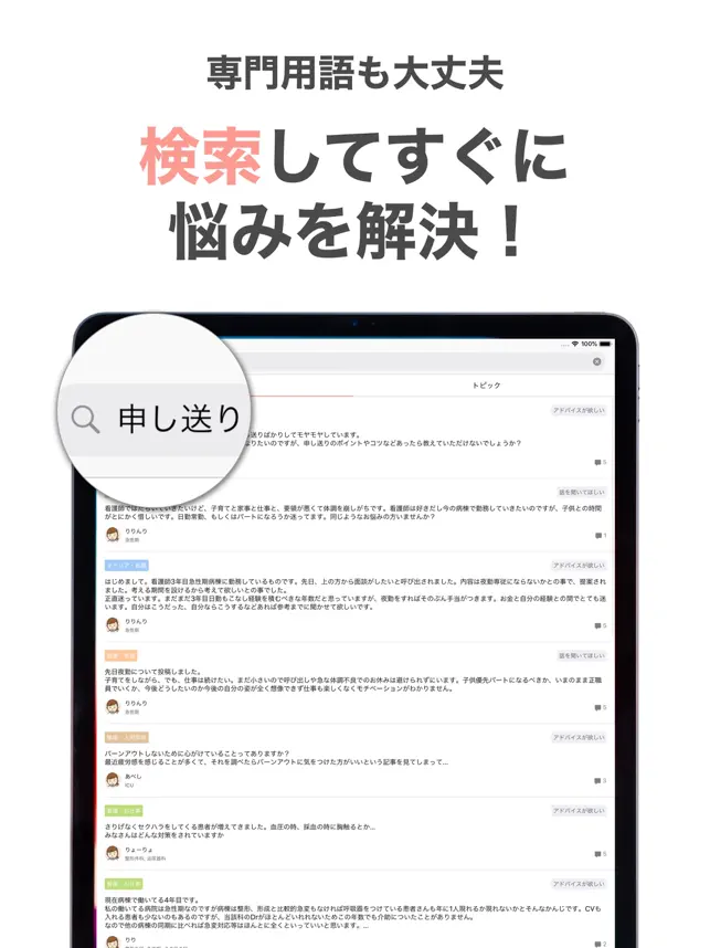 このアプリでは同じ経験をしたことがある方がたくさんいて、アドバイスをはじめ共感もしてもらい、すごくストレス発散になりました。