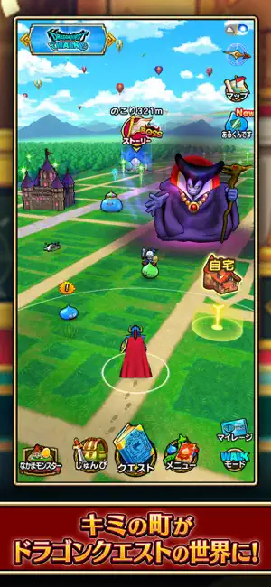 ウォークモードをONにして歩くと自動でモンスターと戦ったり、かいふくスポットに触れたりできるぞ!移動中につかってみよう。