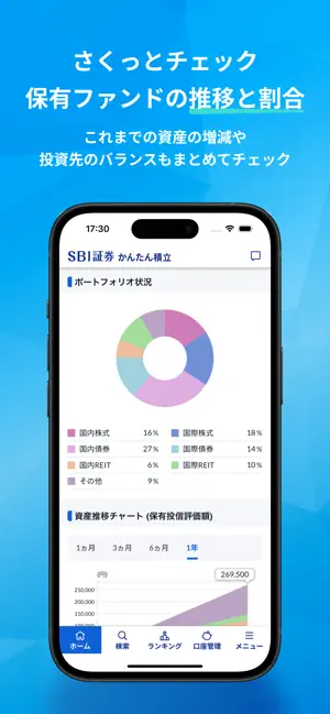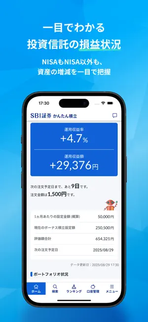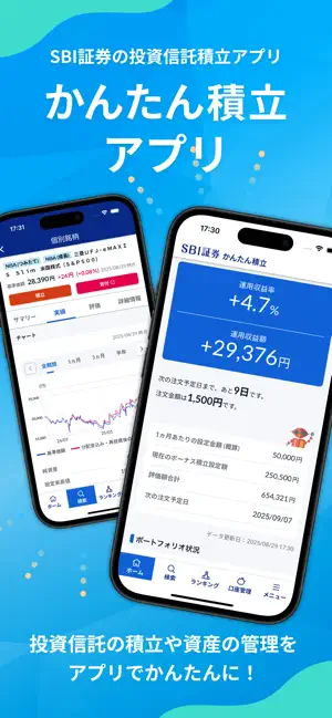 「投資信託の積立設定・口座管理」に特化した、SBI証券公式アプリです。