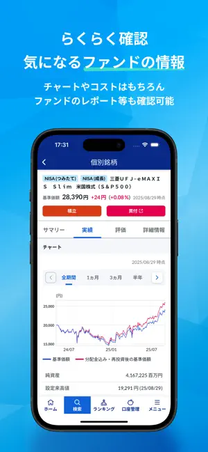 ランキングや検索機能で、気になる投資信託をCHECK。