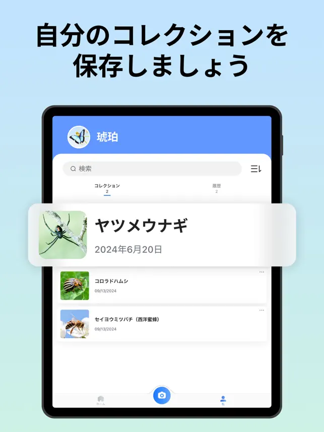 -同定した昆虫の種を個人のコレクションに記録し、友人と簡単に共有することができる。