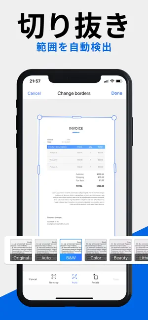 Mobile Scanner appであなたのスマホを強力なスキャナーに変えましょう。文書やメモ、領収書、本をスキャンして高解像度のPDFファイルや画像に変える。光学文字認識技術で画像をテキストに変えたり、あるいは高解像度のPDFファイルに出力します