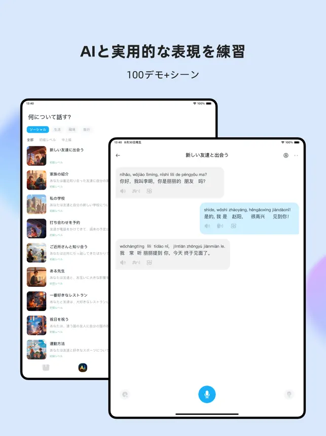 初心者から上級者まで、発音・会話・リスニング・文法をAIがサポートし、HSK試験対策も独学で効率的に進められます。