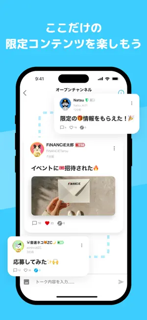 FiNANCiEは、応援を「応援の証=トークン」として可視化し、仲間と共有しながら未来を共に創っていける次世代SNSです。