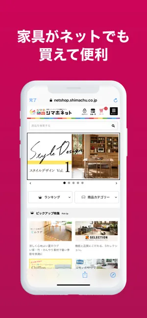 最新のキャンペーン・SALE情報が満載のチラシをいつでもどこでも確認できる『デジタルチラシ』や家具通販サイト『シマホネット』のお買得情報等をお知らせします。