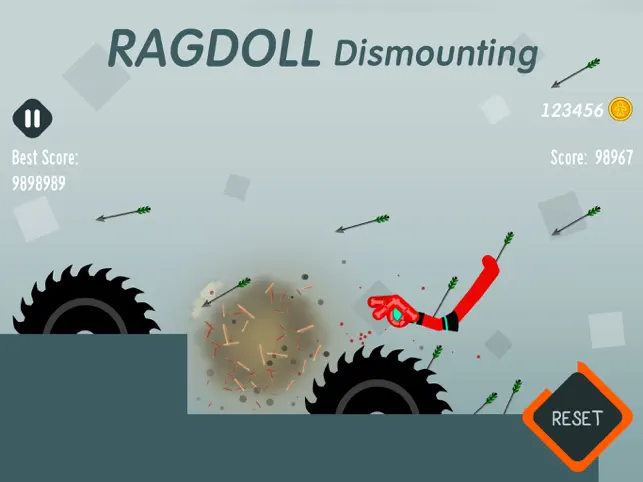 - カオスを超越し更にKHAOSなアプリに成った 数年前にプレイした時は黒いカゴの車や四角い台車に乗せたまま弓矢(arrows)に当てると全身爆発四散しとんでもないスコアになるというバグ技があり既にカオスなゲームでしたが、久々に遊んでみたら更にバグってました。