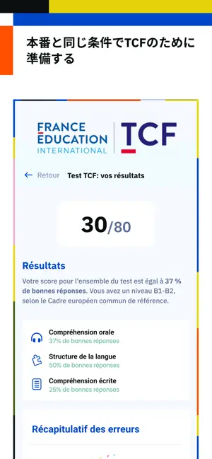学習の基本となる動画 ・ フランス語で世界を理解するための何百もの動画(報道番組、音楽クリップ、映画のシーンの抜粋など)。 ・ 映像が状況や会話の理解に役立ちます。 ・ それぞれの映像に字幕や文字起こしが付いています。 個人に合った学習 ・好きなテーマの中から興味のある映像をお選び頂けます。音楽、モード、料理、芸術、歴史や日常生活に至るまで…。 ・ 興味のあるスキルを自分で選ぶと、それに合った動画や練習問題が自動的に表示されます。 ・ 覚えたい単語や表現を選んでください。アプリが復習や暗記に役立ちます。 モチベーションを保つ秘訣 ・ 毎週新しい練習問題が更新されます。 ・ 多様な形式の練習問題(選択肢問題、クロスワード、穴埋め問題など)で、飽きずに続けられます。 ・ あなたのレベルに合わせて最適化される、単語を効果的に覚えるためのスマートなシステム。 ・ 初心者向けコースは9か国語に翻訳されています:ドイツ語、英語、アラビア語、韓国語、スペイン語、日本語、ポルトガル語、ロシア語、ベトナム語。 場所を選ばず学習可能 ・ インターネット接続なしで利用できるコンテンツがダウンロードできます。 ・ データ使用量を節約するため、ビデオのダウンロードは最適化されています。 ・ 学習結果が記録され、apprendre.tv5monde.comと同期化されます。 試験や資格のための練習ができる ・ TCF(フランス語能力テスト)に向けて、トレーニング問題のセットと本番形式の模擬テストで準備をしましょう。 ・ビジネスシーンを想定した練習問題を通じて、フランス語のプロ資格(国際関係やビジネス)取得に備えましょう。 外国語としてフランス語を学ぶ人のためのプロが味方 ・ TV5MONDEの30年来の教育プログラム。 ・ 練習問題はアリアンスフランセーズ校の教師が監修しています。 ・ テストや資格試験のトレーニングは、フランス語教育専門期間(France Éducation international)およびパリ=イル・ド・フランス商工会議所との連携で作成されています。 料金 全て無料です。