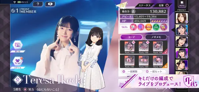 ライブで経験値が手に入れ、ランクアップしよう!メンバーは経験を積むことでアピール力が上昇!