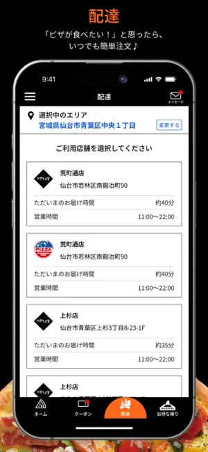 「ピザが食べたい!」と思ったら、アプリからいつでもご注文いただけます。