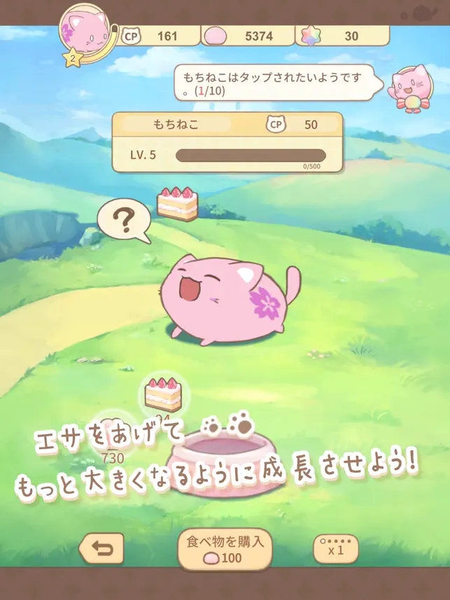 2. 「タップ、えさやり、なでなで」などの簡単操作で、もちねこ達とスキンシップをはかろう