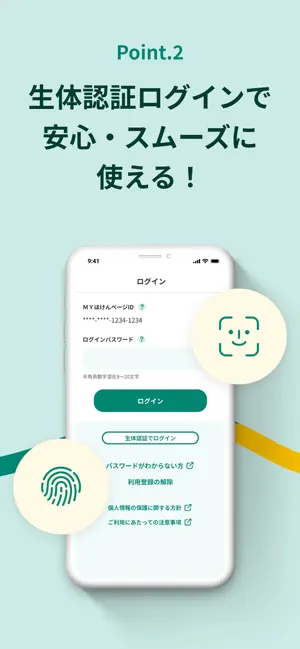 生体認証ログインにより、ID・パスワードの入力いらず。