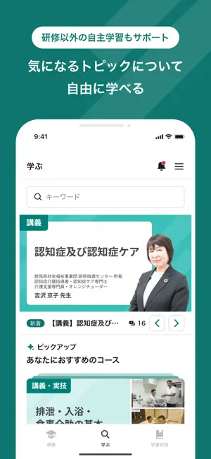 本アプリではプロの講師による充実した研修動画をスマホやタブレットから、いつでも、どこでも、気軽にご視聴いただけます。