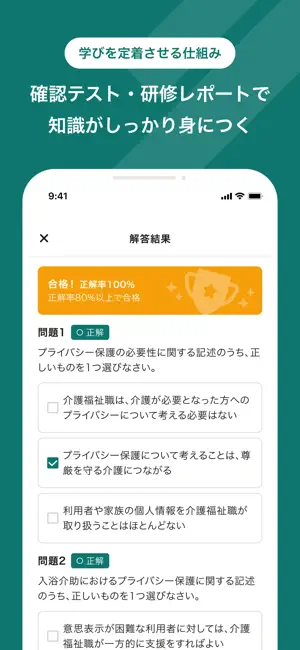 中間管理職研修 倫理及び法令遵守 コミュニケーションスキル メンタルヘルスケア研修 財務会計・事業経営・創業時支援研修 ケアマネ受験対策 介護福祉士受験対策 等 ■ ご注意 本アプリをご利用いただくためには、別途ジョブメドレーアカデミーをご契約いただく必要がございます。