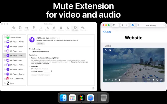 - プレーヤー > ミュート:この拡張機能は、ビデオとオーディオのミュート/ミュート解除を切り替えます。