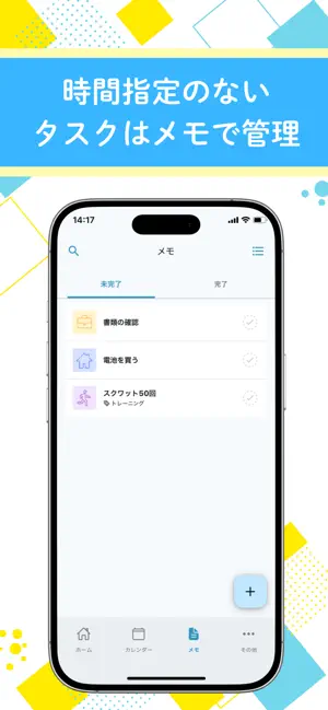ちょっとしたやることを忘れないように、メモ帳代わりとしても使えます。