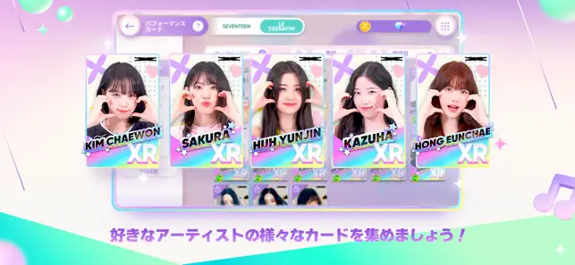 アーティストの様々なテーマが確認でき、ミッションを通して好きなアーティストのカードを集めることができます!
