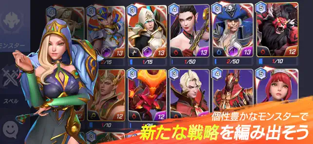eスポな対人サマナ サマナのアリーナを高難易度にしたような対人ゲーム。 メインはひたすら対人、シナリオっぽいものはあるけどは対人をしないと全く進めないしオートなんて無い。 一回の戦闘は長く無いけど相手のスキルと自分のスキルを全て把握してタイミングを見て繰り出さなきゃいけないので集中力が必要。手札の運要素もあるのでカードゲームっぽい感じがした。 サマナーズウォーをプレイしてる人なら感覚でできるけどそうじゃないとスキルから覚えなきゃいけないから大変かもしれない。 今のところ対人以外できることも特に無いしガチャ回さなければ育成もできないしアイテムたくさん貰えてコンテンツを楽しめるわけでも無いので星2。 戦闘バランスは良くも悪くも元々がサマナ。今のところ低ランクのキャラでも使えるけど高ランクの回転率の早いキャラや無敵・バリアスキル持ってるキャラはかなーり有利。 ガチャは闇鍋なのでサマナよりひどい。過金額も高めで手が出しにくいしサマナを知っているだけに多少課金しても焼け石に水で満足感は無い。 全体的にeスポーツを意識しているので対人が好きだったりリーグオブレジェンド系が好きな人には楽しいかもしれない。 元々サマナのアリーナにそこまで力入れていなくて育成を自分のペースで楽しむ勢には合わないけどキャラに会いにインストするのはいいと思う。 ぬるぬる動くキャラもかっこよくて可愛いね。