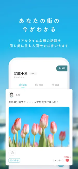 ・「今日はこ‏の‎スーパーで卵が安いよ」「急にお天気雨が降ってきましたね」といった地域SNS/掲示板ア‏プリ‎ならではのローカルでリアルタイムな情報交換