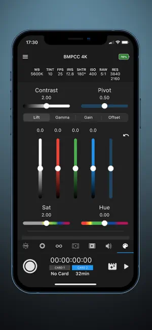 BlueConnect is simple yet powerful app to control Blackmagic Pocket Cinema Camera 4K, 6K or 6K Pro from iPhone or iPad.