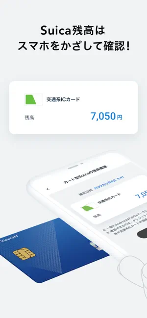 Suica機能付ビューカードにスマートフォンをかざすと、交通系ICカードの残高が確認できます。
