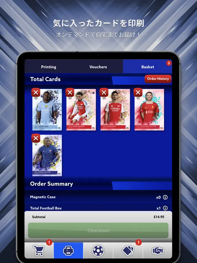 トレーディングカードを集めて、トレードして、世界中のサッカーファンと対戦。集めたTopps®カードは印刷もできます! Topps Total Football®では、デジタルとリアルの戦略カードゲームが交錯します。