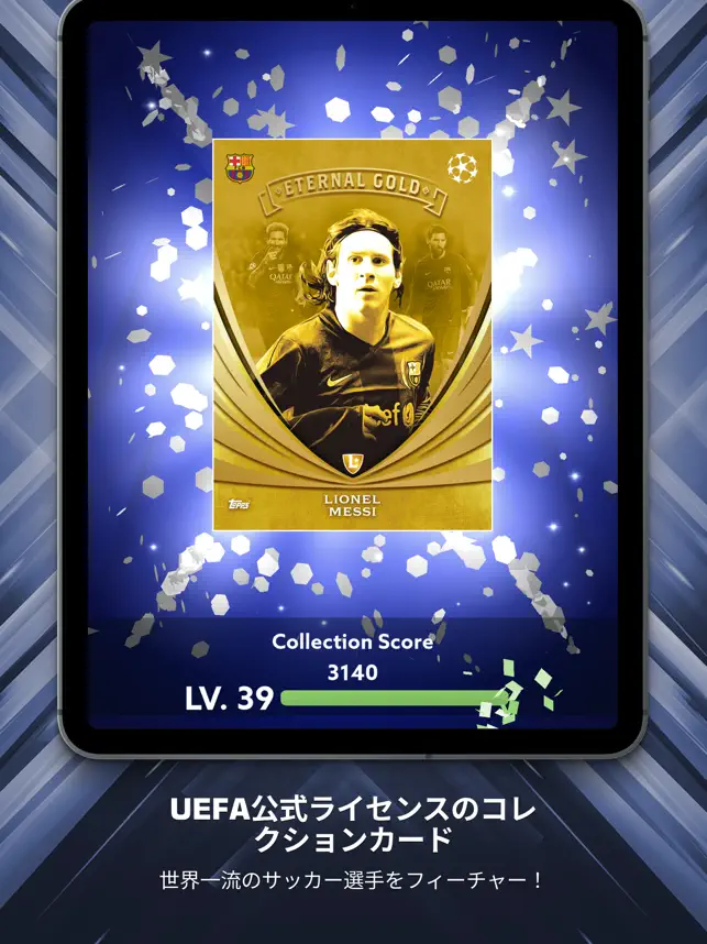 コレクションの新しい時代が始まる。世界一流のサッカースターのデジタルトレーディングカードを集めて、カードゲームで対戦して、オンデマンド印刷機能でリアルのカードを受け取ろう!