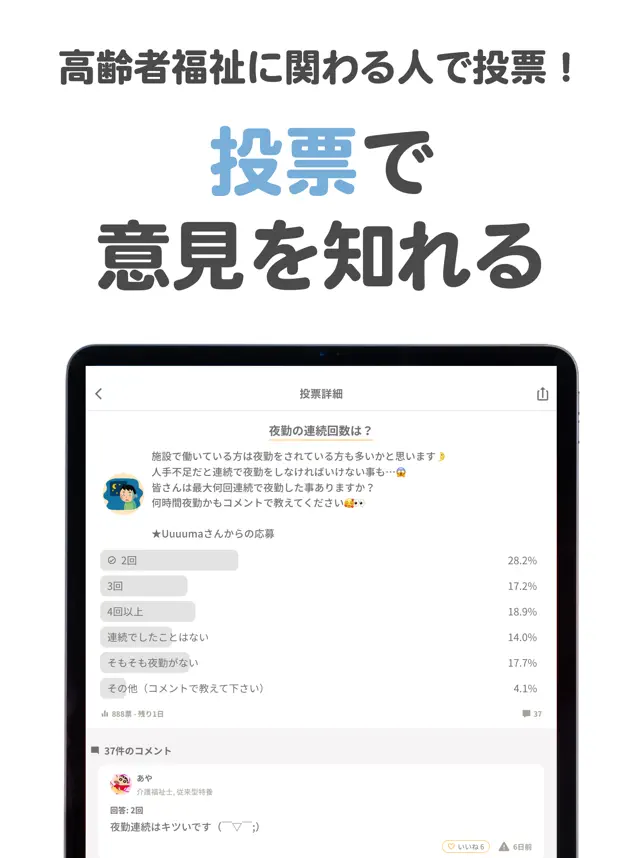 ・介護に関する仕事をしている人しかいないから、友達に分かってもらえないことも分かってもらえる!