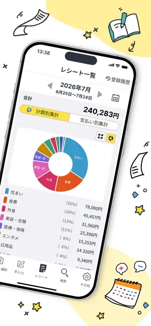 - 登録したレシートを月ごとに表示します。