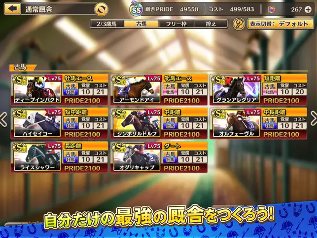 歴代の名馬や現役最強馬を獲得して、『最強の厩舎』を作ろう。