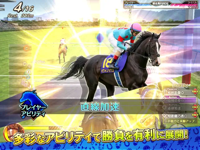 ウマプラでは騎手目線でレース勝利を目指す「ジョッキーモード」をはじめ、カード選択式でレースを進める手軽なモードなど、さまざまな視点でレースを楽しむことができます。