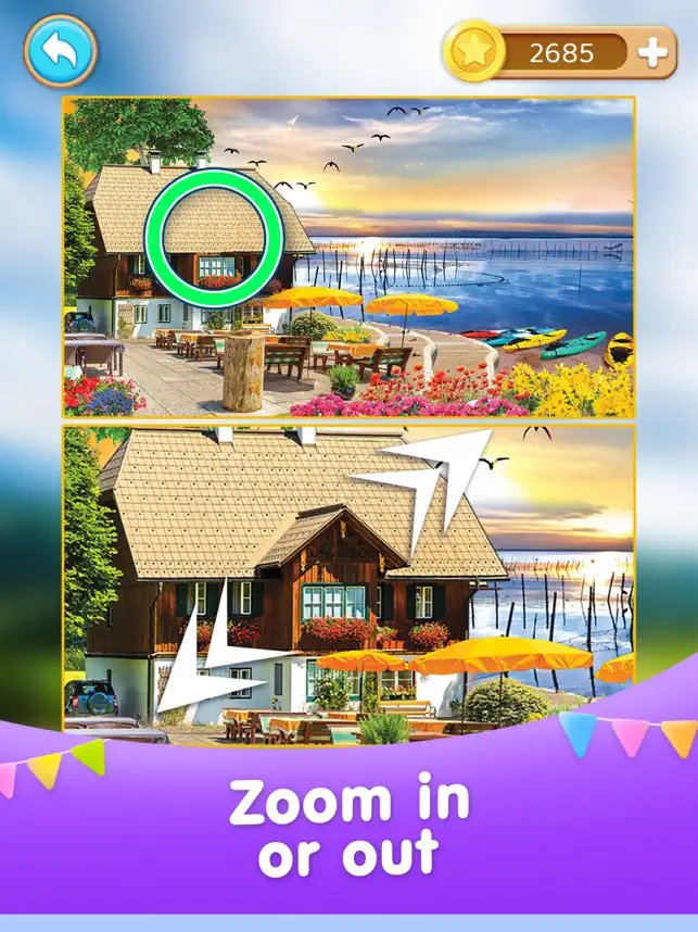 - 簡単なルールです。すべての違いをチェックし、それをタップして指定された画像にマークしてください。