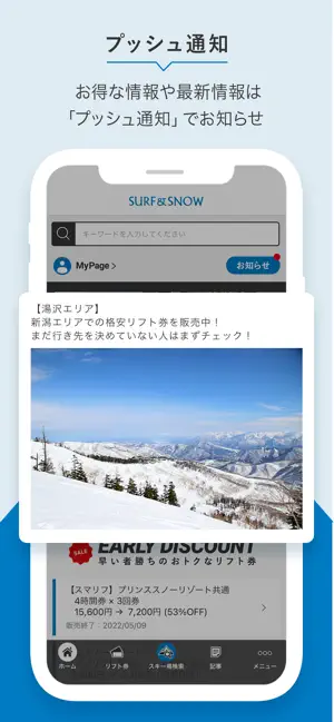 リフト券の「早割」「クーポン」を配信中。スマホで受取れる便利な