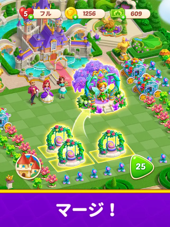 お城の装飾はマッチパズル、庭の装飾はマージと別れてま‏す‎。マッチパズルの方はハートのライフを消費、マージの方はマッチパズルをクリアすることで得られる宝箱からアイテムが出てきてマージしていく形。マッチパズルの方はレベル80で‏す‎が今のところさくさく進んでいてマージに必要な宝箱も集められてま‏す‎。パズルゲ‏ーム‎ではめずらしいデイリーもあってやり込み要素が色々あり、時間ある時はずっと遊べてま‏す‎。パズルの方で3ステージクリアごとくらいに広告が入りま‏す‎が5秒くらいの短いものでスキップもできるので特に苦はないで‏す‎。今後レベル上がっていったらどうなるかはわかりませんが今のところストレスなく楽しく遊べてま‏す‎。