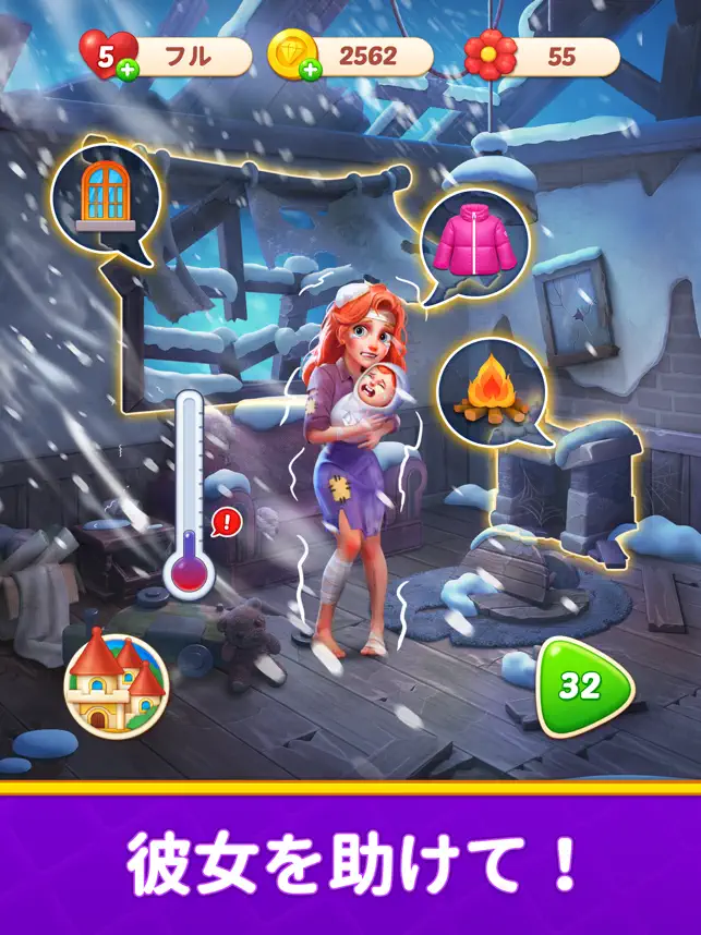 3つ以上の宝石をマッチさせて、爆発的なコンボを作り、レベルをクリアしていきま‏す‎!自宅の部屋を改装して飾り、部屋のデザインを完成させると報酬を受け取り、魔法の冒険を続けましょう!城は改修の準備が整った!今すぐ始めましょう!