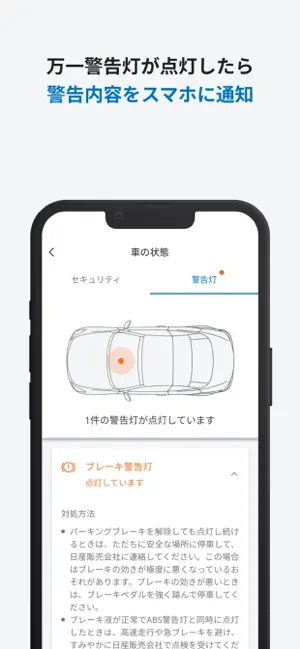 万が一クルマに異常警告灯が点灯したら、アプリ上に通知が届きます。