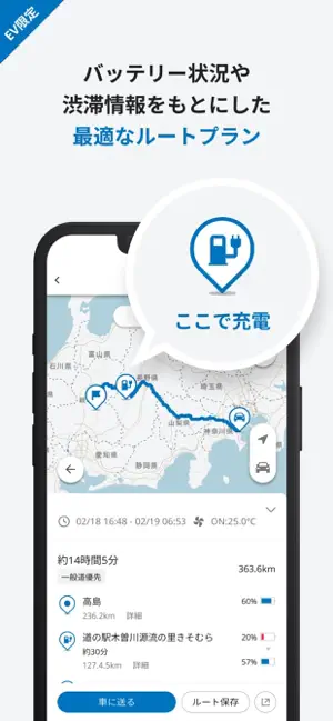 ルートの事前予約も可能です。出発時刻が近づくと、カーナビにルートが送信されます。