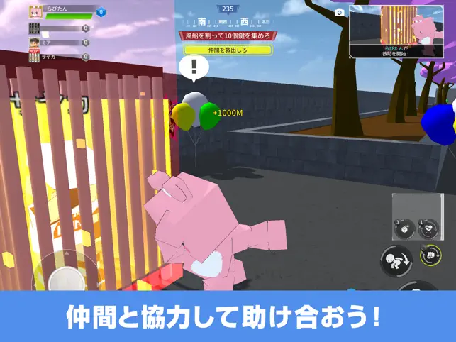 ・ランナーは風船を割りながら鍵を集め、脱獄する。ハンターはそれを阻止する。